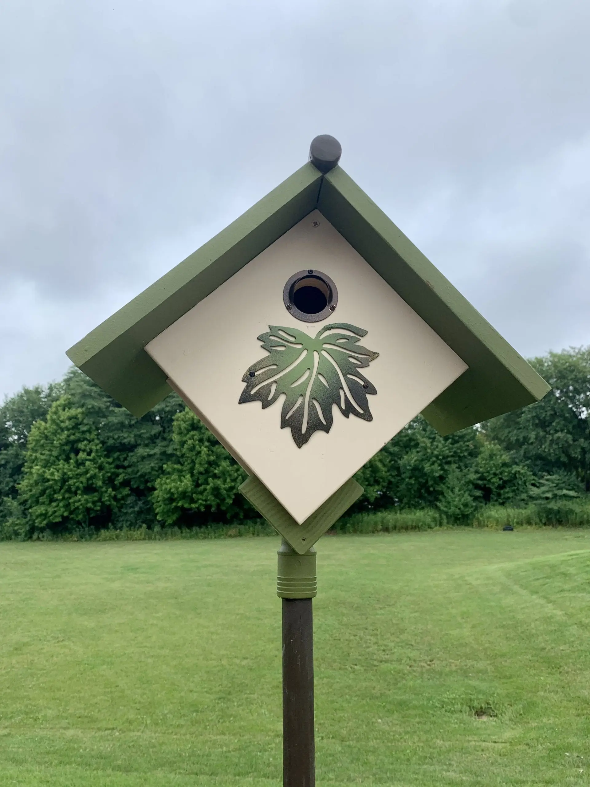 These diamond shaped birdhouses were assembled and painted by our students. These products are for pick-up only.